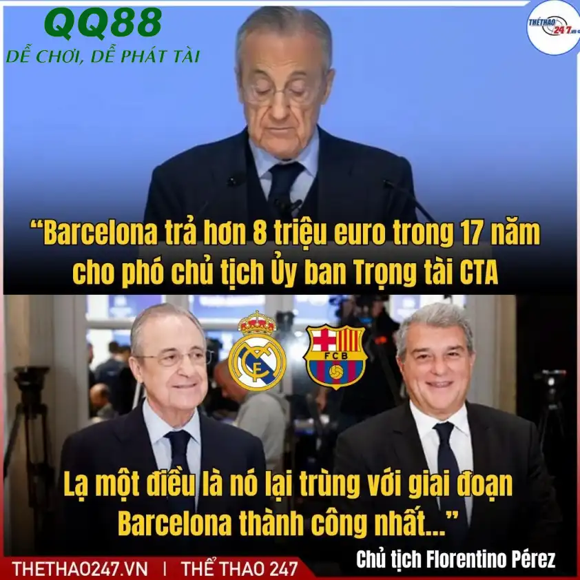 Chủ tịch Florentino Perez của Real Madrid từng “nóng mặt” tuyên bố trong một cuộc họp nội bộ: “Việc Barcelona trả cho phó chủ tịch trọng tài hơn 8 triệu euro trong 17 năm là một điều hết sức bất thường, dù với bất kỳ lý do gì đi nữa.”